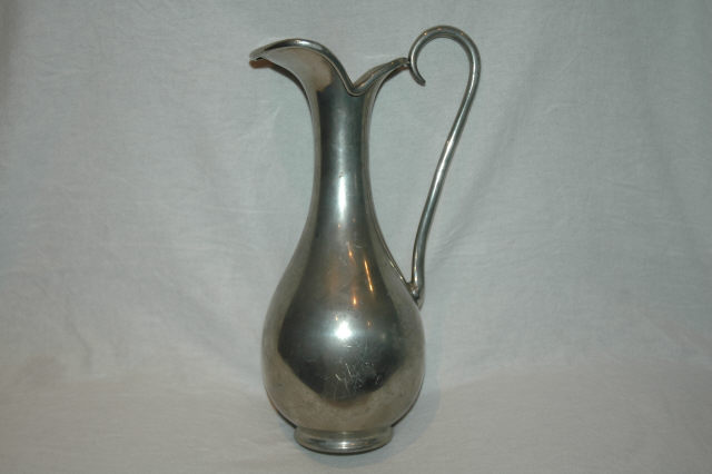 Gomil com base circular de orla lisa. Corpo periforme liso. Garganta recortada, pouco pronunciada. Asa em curva.