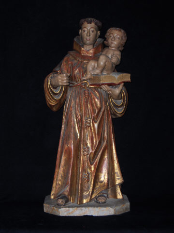 Figura masculina, média dimensão, vulto pleno, de pé, segura com a mão esquerda um livro aberto onde se senta um menino nu. Imberbe, com corte de cabelo em tonsura. Hábito castanho decorado com motivos esgrafitados e debroado a ouro ouro. É apertado por um cinturão dourado donde pende um cordel com três nós. O capuz de orelhas, recebe a mesma decoração que o hábito. Calça sandálias negras.