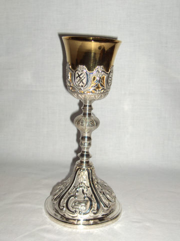 Cálice de base circular alteada, haste balaustriforme e copa campanulada.